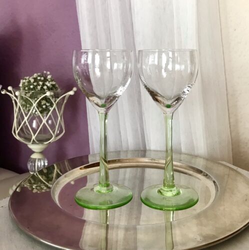 Antik 2 Sherrygläser Sherry Glas Uranglas? grüne Kuppa Sammlerglas schön
