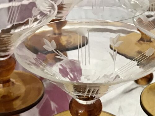 Antik 6x Art Déco Weingläser topasgelber Stiel optisch gerippt