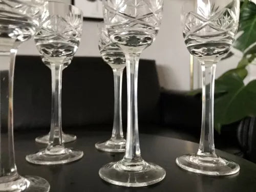 Antik 6 hochstielige Jugendstil Art Déco Likörgläser Kristallglas Schliff EDEL