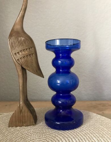 60er 70er Jahre blau Glas Kerzenständer Vase ? Blumenvase ? Glasvase?