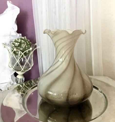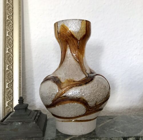 60er Vintage Vase Glasvase Friedrich Glas mundgeblasen Beige Braun