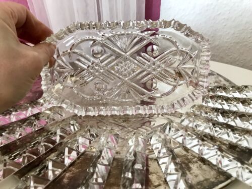 Alt antik 12x Art Déco Messerbänkchen & Schale Kristallglas Glas EDEL Schliff