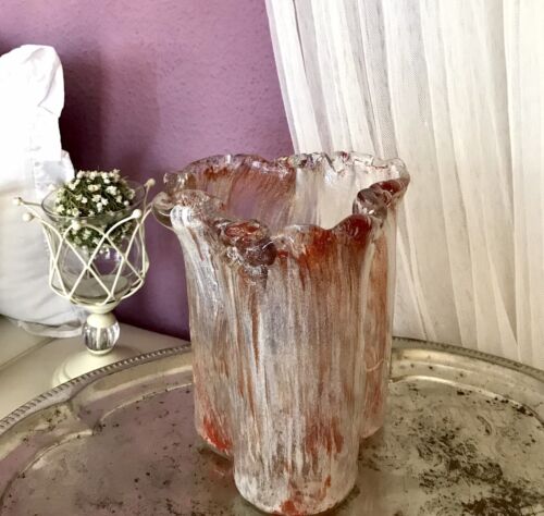 70er ? Vase Blumenvase Glasvase Glas rote weiße Effekte Kröseleinschmelzungen?