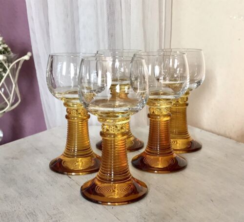 Alt 5 Stück Weingläser Römer Gläser brillant EDEL gelber Stiel Glas Nuppen