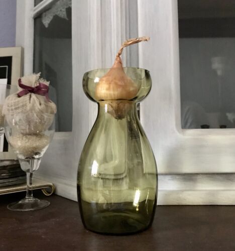 antik Art Déco Glasvase Hyazinthen Glas Vase Zwiebelglas gerippt