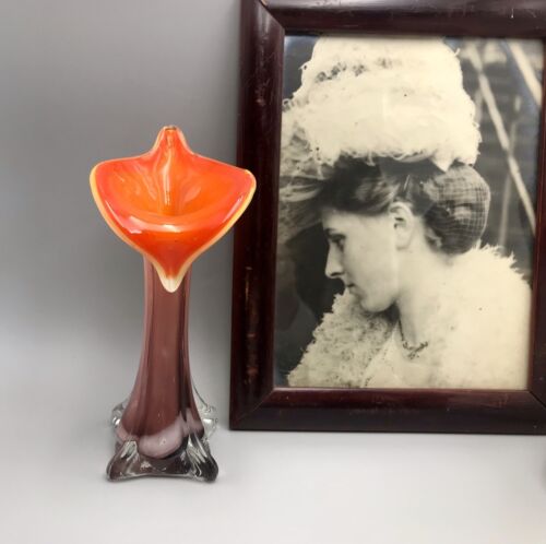 Antik Art Déco Glasvase Vase Wunderschön Überfangglas Abriss Amethyst orange
