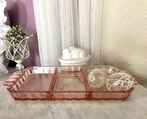 Antik Art Déco Kabarett Servierschale Rosalin rosa Pressglas Schale Brockwitz