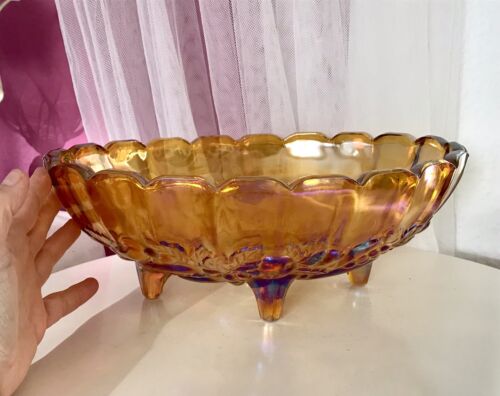 Antik Art Déco groß Bernstein gelb Carnival Glas Pressglas Schale Jardiniere