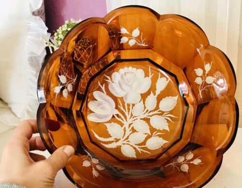 Antik Art Déco Haida ? Glas Schale Kristallglas Bernstein Schliff Jardiniere