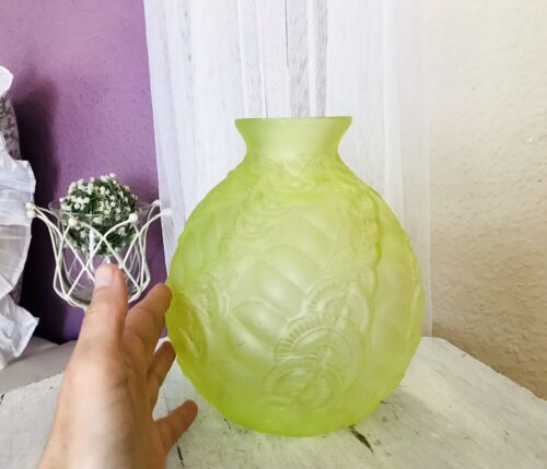 Antik Art Déco Glasvase Vase Uranglas recht groß reliefiert Gablonz? so Schön!