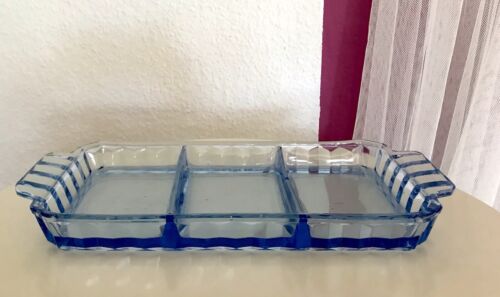 Antik Art Déco Kabarett Servierschale blau Pressglas Schale Brockwitz