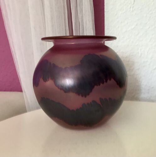 Alt Antik? Glasvase Glas Vase Kugelvase Glaskunst irisierend beere & blau