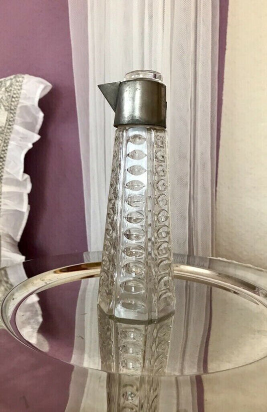 Alt antik kleine Karaffe Kristallkaraffe Montur Zinn