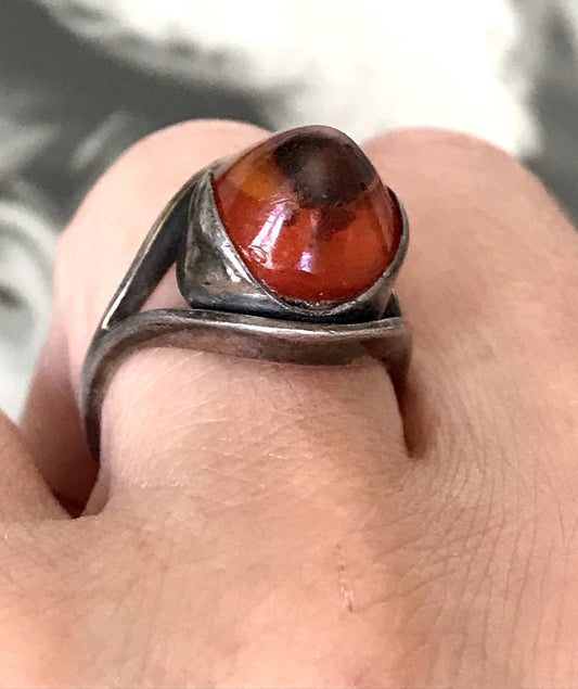 Alt Antik Vintage Edel Bernstein DAMEN RING Silber Super Design! Gr.56 57 WOW!
