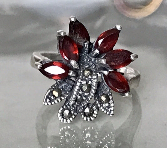 Alt antik Damen Ring Silber 925 SUPER rote Steine Granate ? Markasite Gr.56