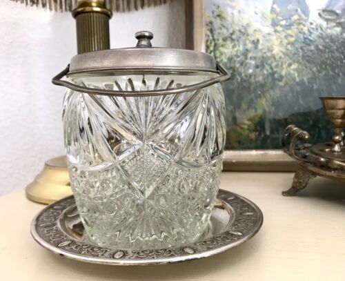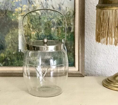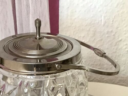 Antik Bonboniere Glasdose Keksdose Glas Metallmontur Art Déco Konfektdose