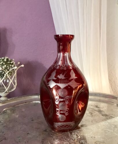 Antik Bohemia Egermann rot Überfangglas Rubin Schliff Vase Glasvase Karaffe
