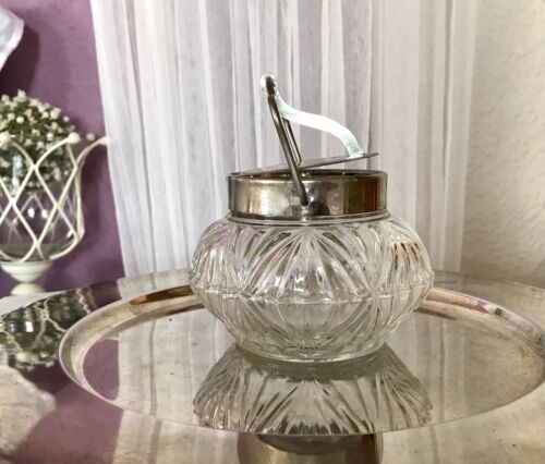Antik Bonboniere Gefäß Glas Metallmontur Glas Pressglas Senftopf Konfitüre Dose