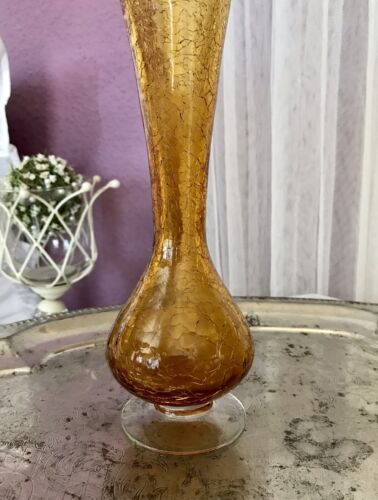Antik Craqueleè Vase Glasvase Bernstein Gelb Amber Art Déco 50er Vintage
