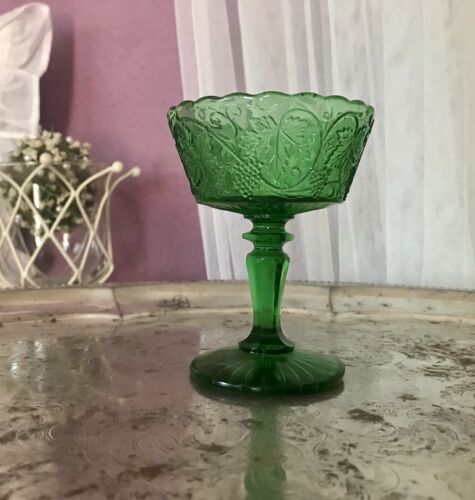 Antik Brockwitz 1915 Jugendstil Pressglas Zuckerschale Schale Fußschale grün