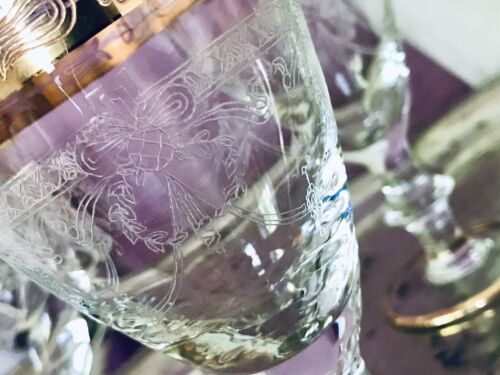 Antik edel 5x Jugendstil Weingläser Girlanden Behänge geätzt Goldrand
