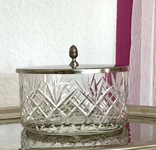 Antik Dose Deckeldose Glasdose Bonboniere Glas Edel Kristallglas graustichig
