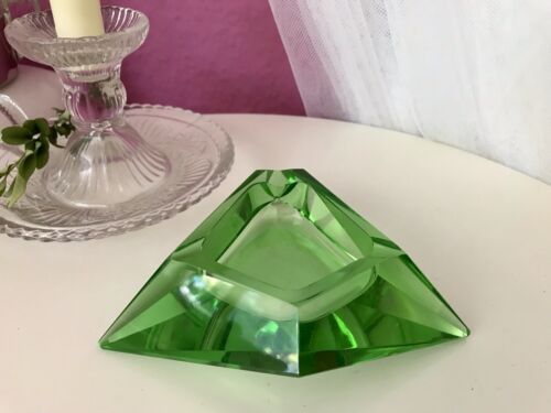 Antik Design Art Déco Aschenbecher Ascher grün Kristallglas Franz Burkert? EDEL