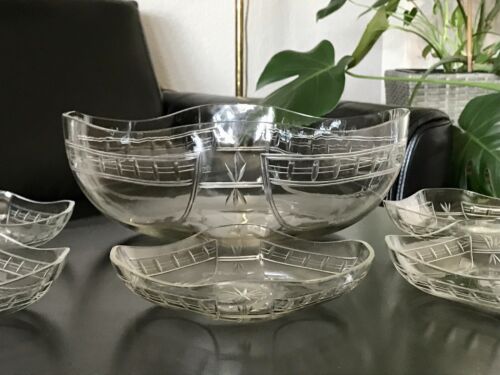 Antik EDEL Jugendstil Glas Kristallglas Schale & 5 Schälchen Schliff Secession