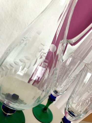 Antik Karaffe Dekanter Glas 6 Sektflöten Gläser Jugendstil Schliff gerippt