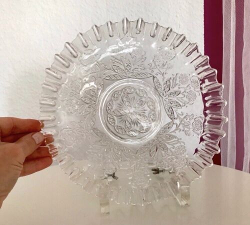 Antik Jugendstil Serviettenrand Pressglas Schale Glas Blumenmuster