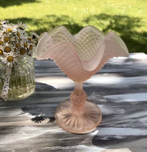 Antik Jugendstil Serviettenrand Pressglas Schale Fußschale Bonboniere Glas rosa