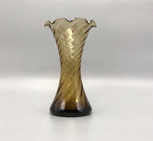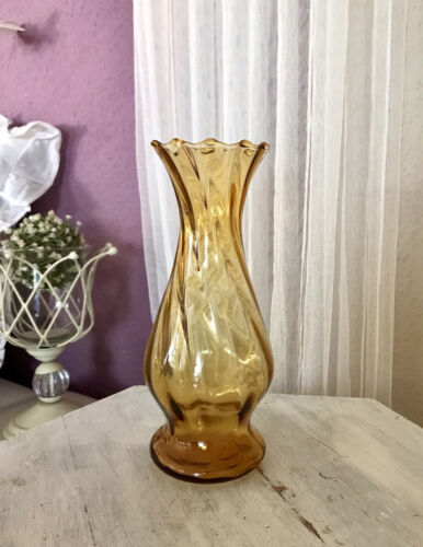 alt Vase Glasvase 60er Bernstein braun-gelb Amber Wellenrand gerippt