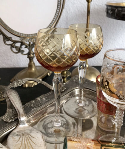 alt vintage 2x Weinglas Römer Kristallglas geschliffen bernstein gelb Glas