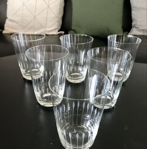 Alt Vintage 60er 5 Becher Trinkbecher Gläser Kristallglas Muster String-Ära