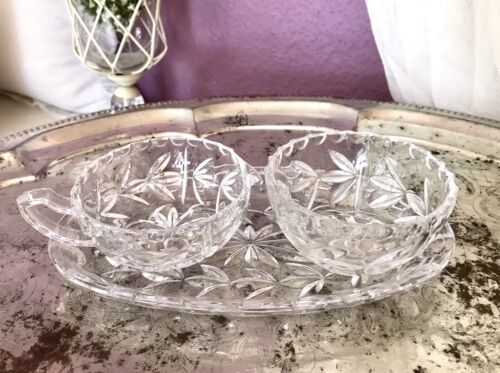 Alt Sahnesatz Milchkännchen Zuckerdose Tablett Glas edel schwer Kristallglas