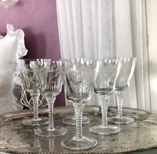 Alt Vintage 60er 6 Gläser Weingläser Mid Century geschliffen Stiel gesponnen