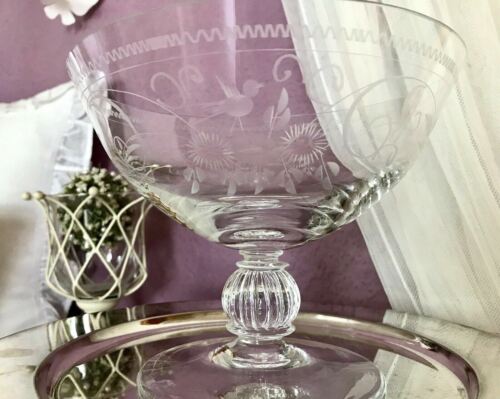 Alt Theresienthal Schale auf Fuß Glas geschliffen elegant Radgravur Edel!