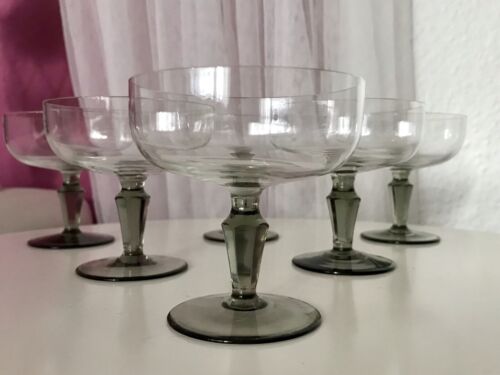 Alt Vintage 60er 11 Gläser Weingläser Mid Century geschliffen Rauchglas Stiel