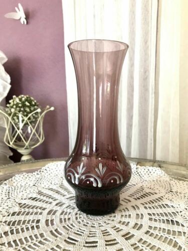 Alt Vase lila mauve Glasvase Vintage Email Malerei