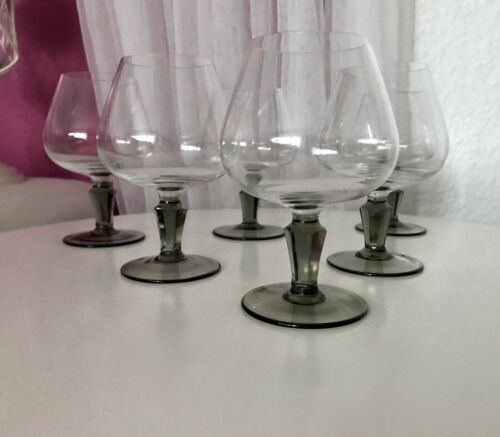 Alt Vintage 60er 11 Cognacgläser Cognacschwenker Mid Century Rauchglas Stiel