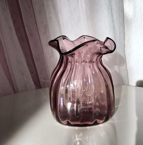 Alt lila Vase Blumenvase Glasvase Glas Abriss Kragen gerippt Glaskunst vierkant