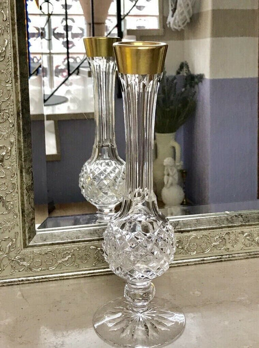 Alt Kristallvase Vase Pokalvase Bleikristall Goldrand edel