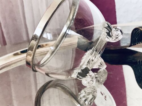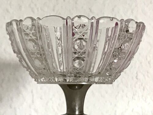 Antik kleine Schale Glas silberfarbeN Metallrand 3füssig Zuckerschale Bonboniere