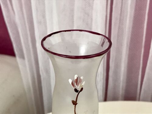 Antik kleinere Jugendstil Vase Väschen Glasvase satiniert Glas Email-Bemalung