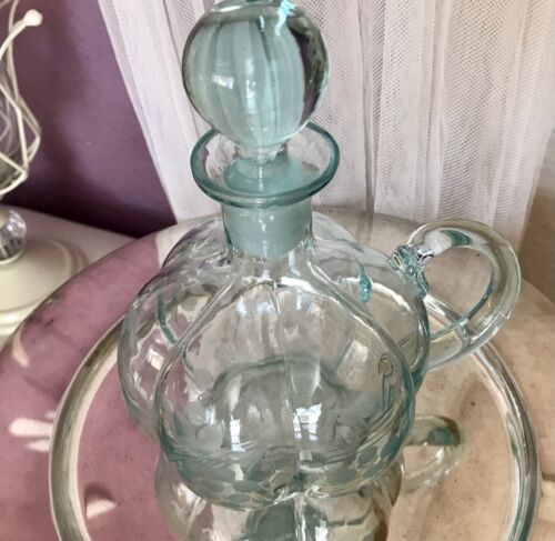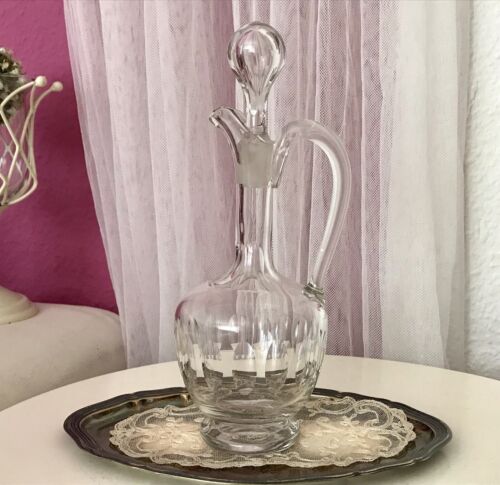 Antik Kristallglas Karaffe Glas Schliff Oliven Abriss eingest. Luftblase Stopfen