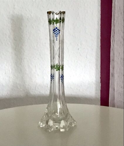 Antik kleinere Vase Väschen Glasvase Glas Emaile-Bemalung kantiger Stand Rand