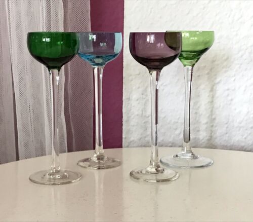 Antik langstielig 4 Jugendstil Glas Likörgläser Stengelglas 1 lila 2 grün 1 blau