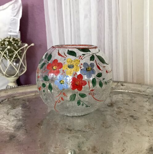 Antik Kugelvase Craqueleè Vase Glasvase Emaile-Malerei Art Déco