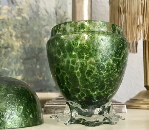 Antik Lötz? Palme? Kralik? wundervolle Glasdose Jugendstil grün Rarität