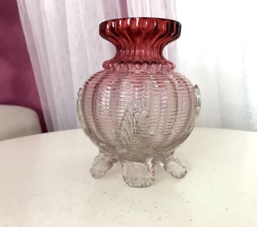 Antik rubin rot farblos gesponnene Optik Vase Jugendstil Aufschmelzungen